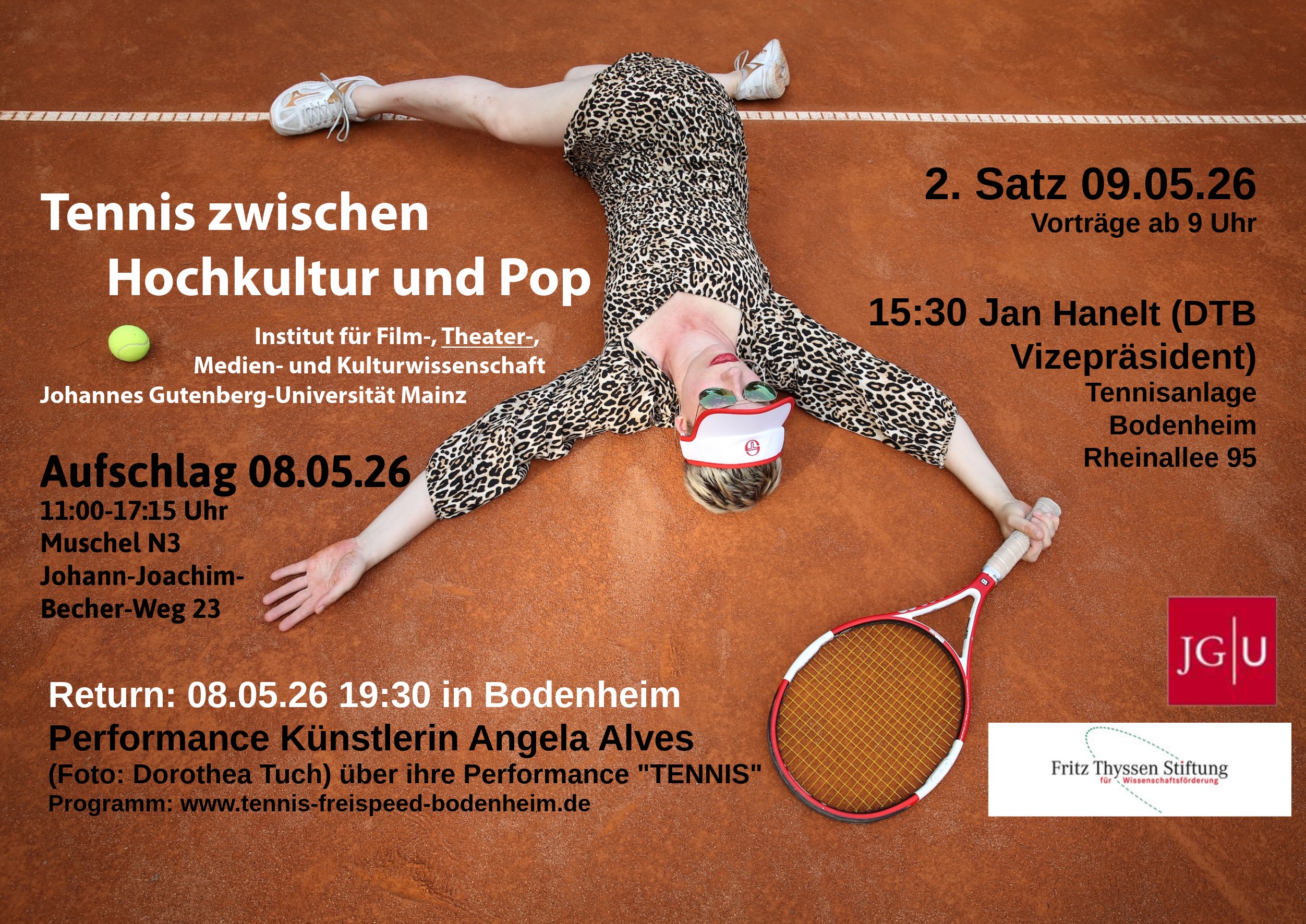 Das Symposium “Tennis zwischen Hochkultur und Populärkultur” wird von Theaterwissenschaftlerin Dr. Clara-Franziska Plum vom Fachbereich Theaterwissenschaft des FTMK Institutes der Johannes Gutenberg-Universität Mainz in Kooperation mit dem TSC Freispeed Bodenheim e.V. organisiert. Es setzt sich zum Ziel, die historischen und gegenwärtigen Verbindungen von Tennis, Politik und theatralen Phänomenen zwischen Hochkultur und Populärkultur zu untersuchen.