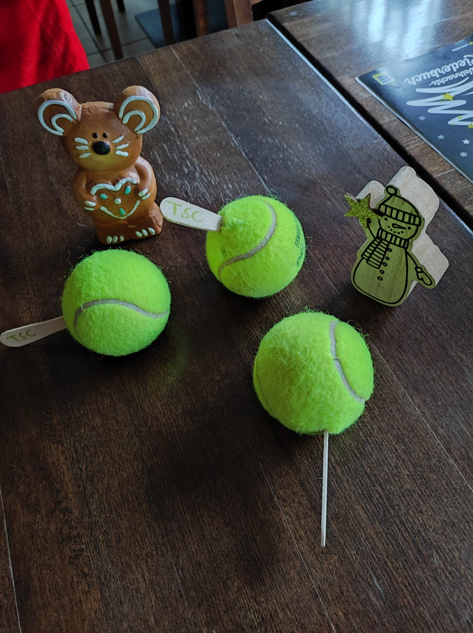 Rund 30 Gäste kamen zum Adventssingen der Kinder unserer Ballschule. Gemeinsam haben wir bekannte Weihnachtslieder gesungen und leckere Waffeln gebacken. Jeder hat ein paar weihnachtliche Knabberreien für ein großes gemeinschaftliches Buffet mitgebracht. Das Tennisspiel kam auch nicht zu kurz. Die kleinen Ballkünstler haben sich voll Freude mit ihren Eltern auf dem Platz gemessen und immer wieder beim Essen gestärkt. Zum Abschluss gab es noch ein kleines Nikolausgeschenk 🙂 Übrigens, nicht nur unser Adventskranz besteht aus Tennis(wachs)kugeln, wir haben auch Rasseln und Weihnachtskugeln aus Tennisbällen gebastelt. Schaut mal hier: